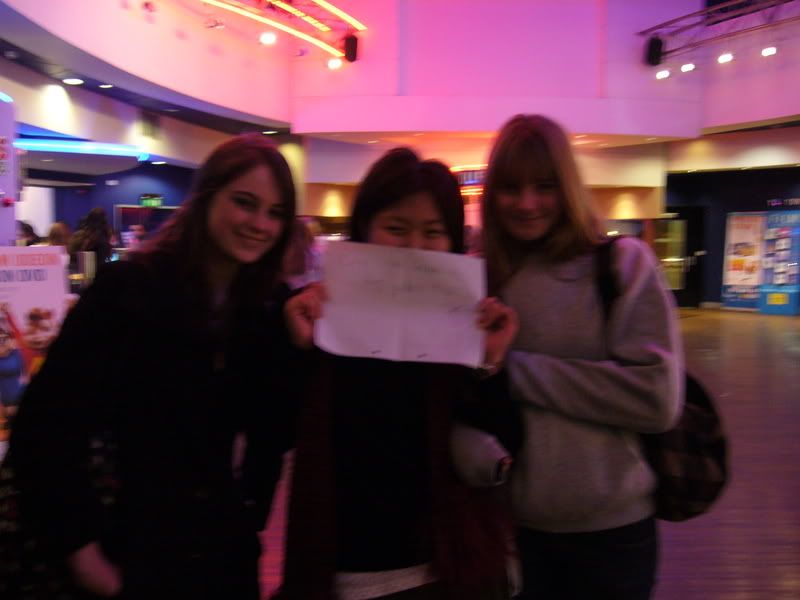 Later in the evening, to Clarissa's with Cathy. BEST. FUN. EVER. Including being completely outwitted by the Oxbridge medics/scientists, friends of her sister/brother who used to go to Tiffin Girls/Boys. Basically, we were SINGING and playing Psychologist (SO MUCH FUN) and random games and stff, but mostly singing. Really. Loudly. WHICH IS FUN, and the best, ever. (Which reminds me, hehehe we now have a really exciting project to work on!) So yeah, we were probably disturbing all the neighbours nad it was getting on till about 11 at night. SO. Clarissa's sister, Charlotte, comes over and is like